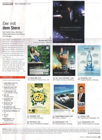 - Auszeichnungen in allen Kommunikationsdisziplinen (Anzeigen, Publikationen, Film und Events)